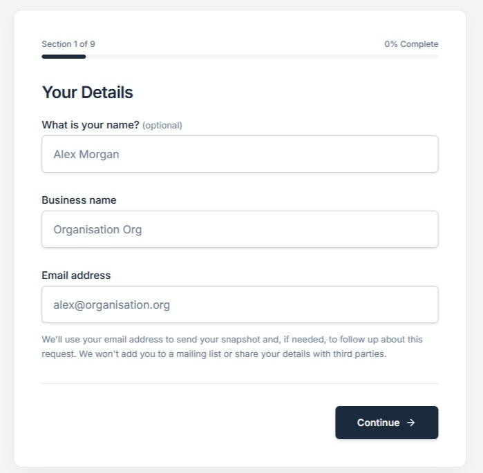 The tool uses a structured set of questions to build a picture of how the process currently operates.