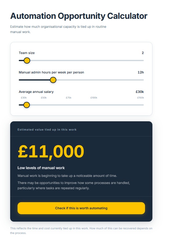 By making routine work more visible and giving it a sense of scale, it becomes easier to identify processes worth examining, prioritise where effort should go, and approach change as a way to reduce unnecessary work rather than replace people.